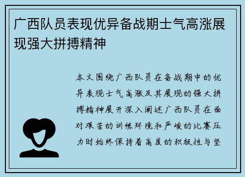 广西队员表现优异备战期士气高涨展现强大拼搏精神