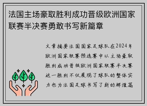 法国主场豪取胜利成功晋级欧洲国家联赛半决赛勇敢书写新篇章