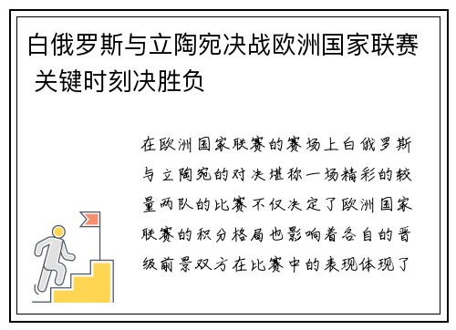 白俄罗斯与立陶宛决战欧洲国家联赛 关键时刻决胜负