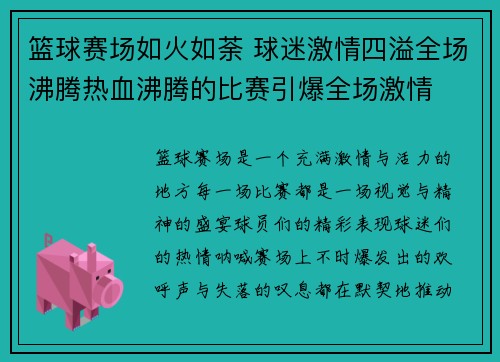篮球赛场如火如荼 球迷激情四溢全场沸腾热血沸腾的比赛引爆全场激情